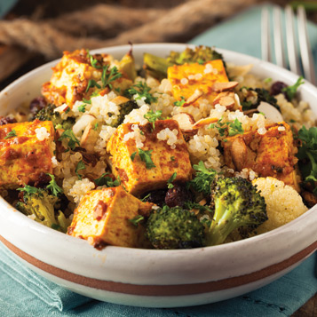 - To assemble: Distribute quinoa into two bowls, then top evenly with vegetables, turkey or tofu, and almonds.